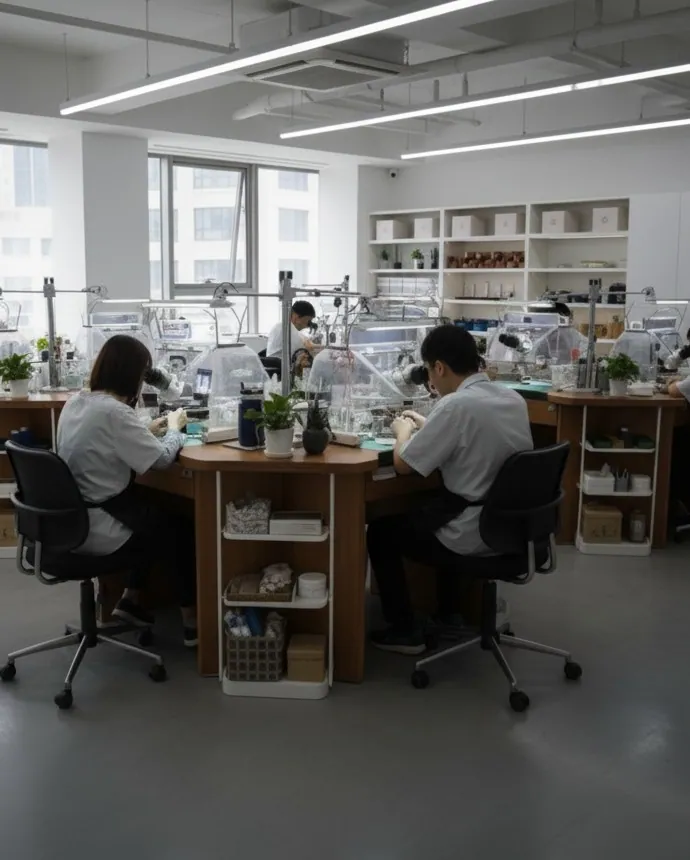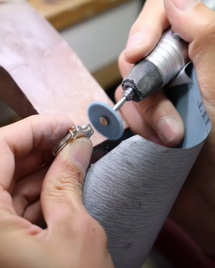 Securely setting the polished moissanite into the metal mounting → final polishing → rhodium plating (if white gold) → thorough quality control → ultrasonic cleaning and packaging.