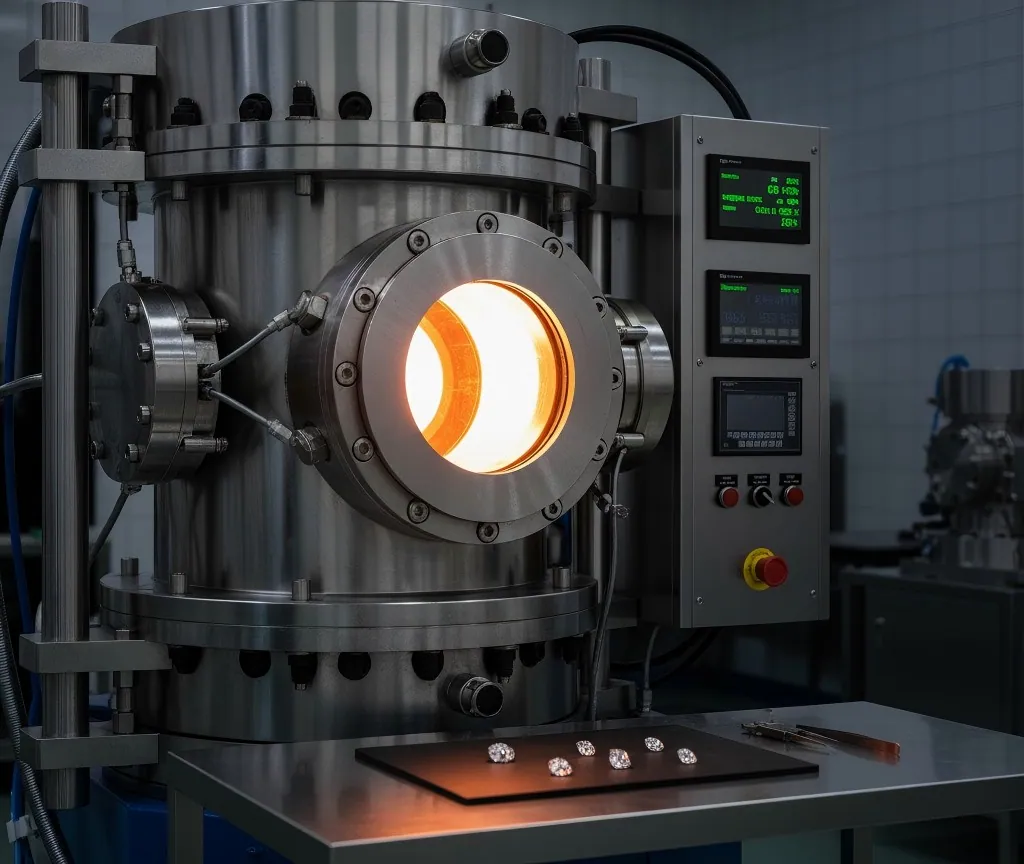 Faceting into the final shape (e.g., round brilliant with 57–58 facets) → high-precision polishing → quality inspection and grading (4Cs + fire/brilliance check).