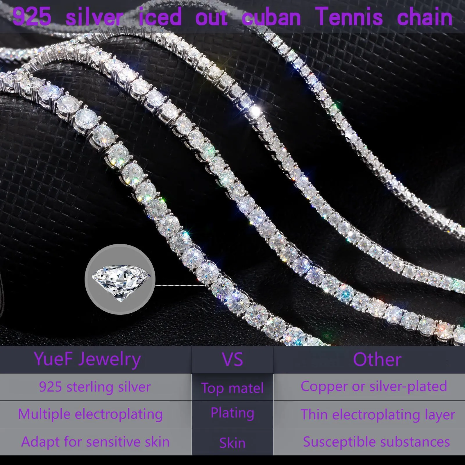 925 silver iced out cuban link Tennis chain
