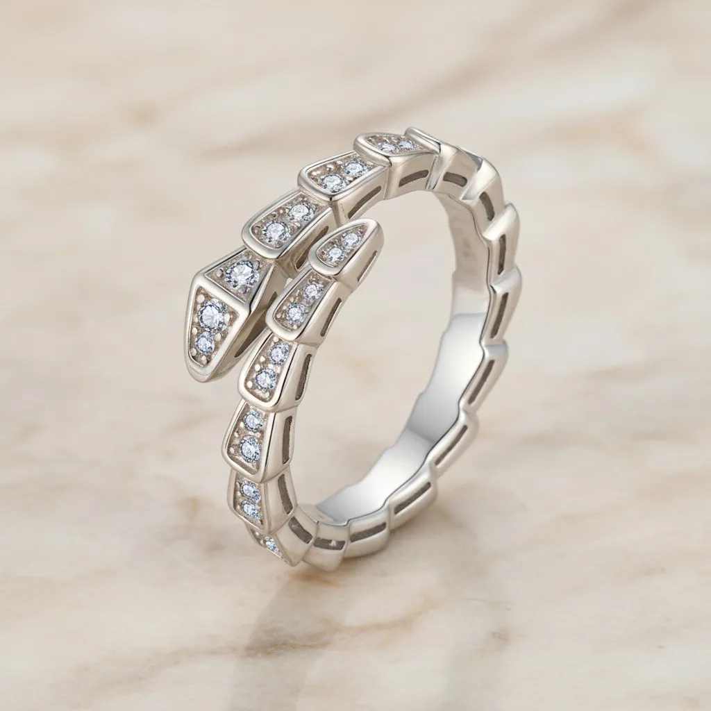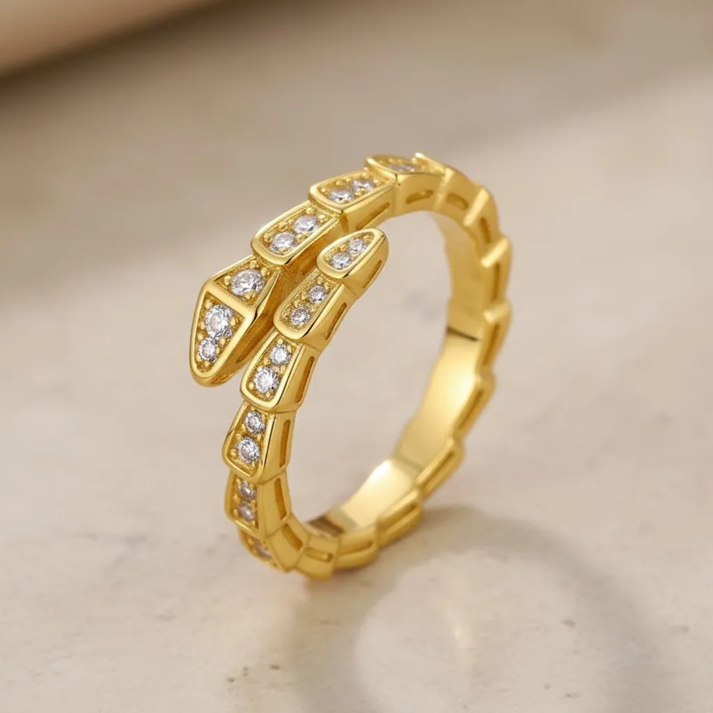 925 Silver Personalized gold serpent Full Moissanite Rings