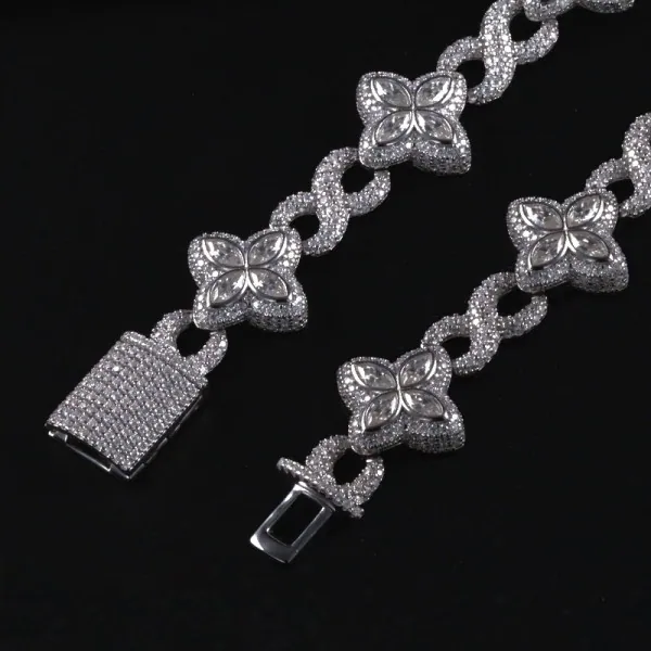 High-luxury style four leaf clover loop-clasp moissanite bracelet
