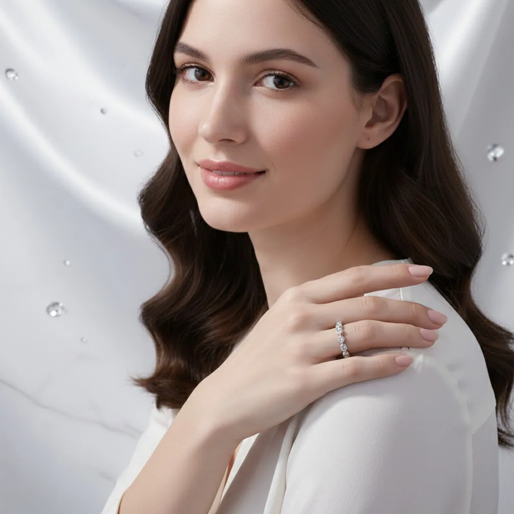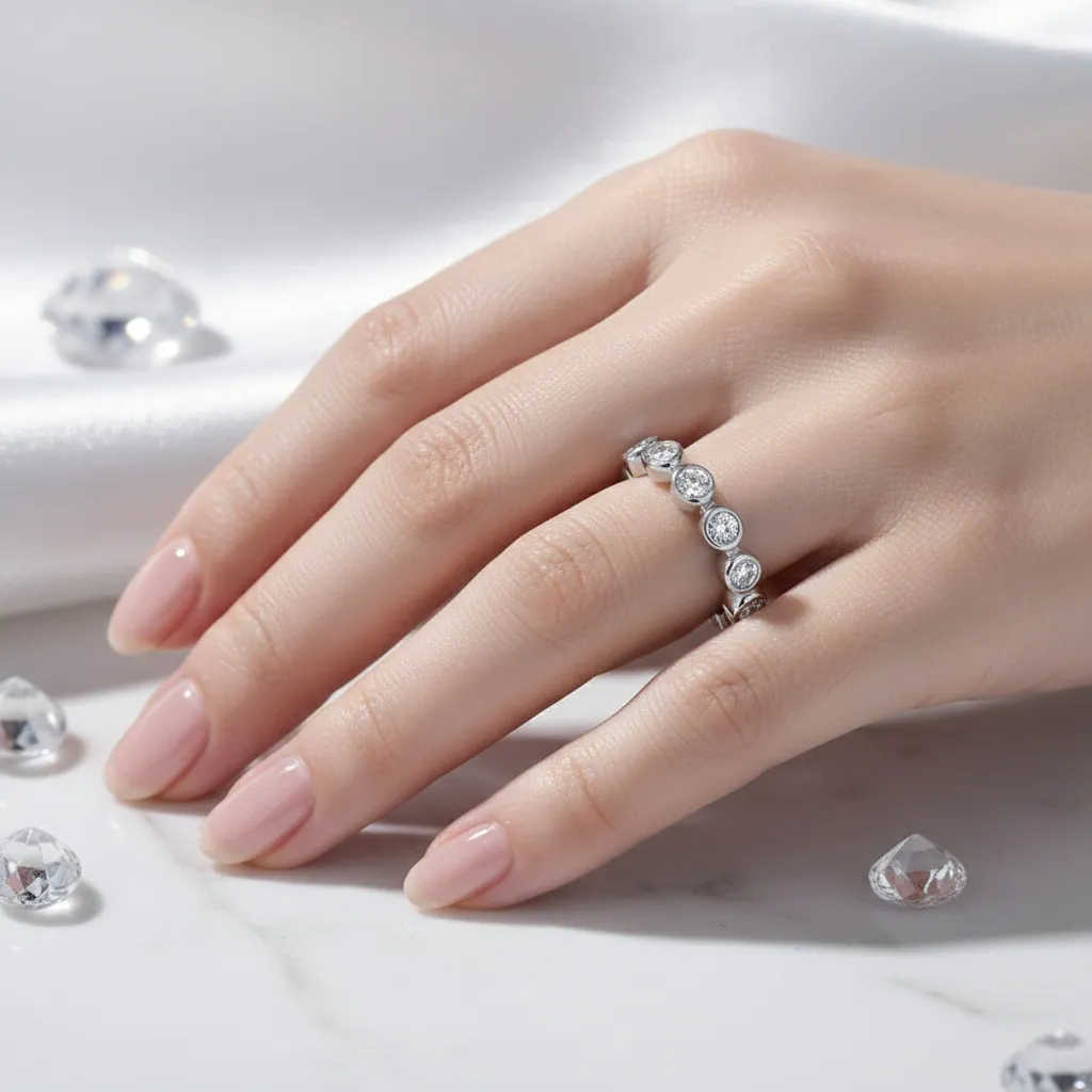 Eternity Ring Gold Single Row Moissanite Dot Prongs