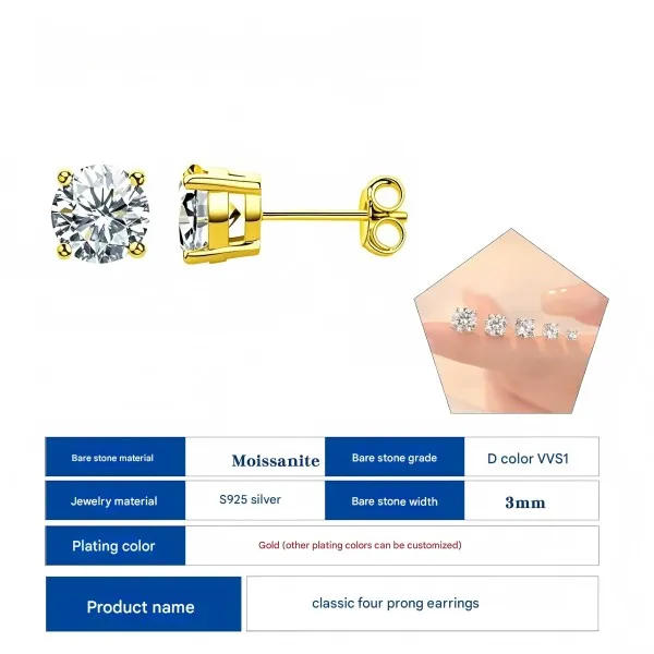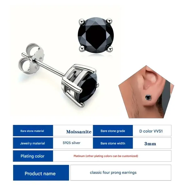 Women’s Single Moissanite Diamond Stud Earrings