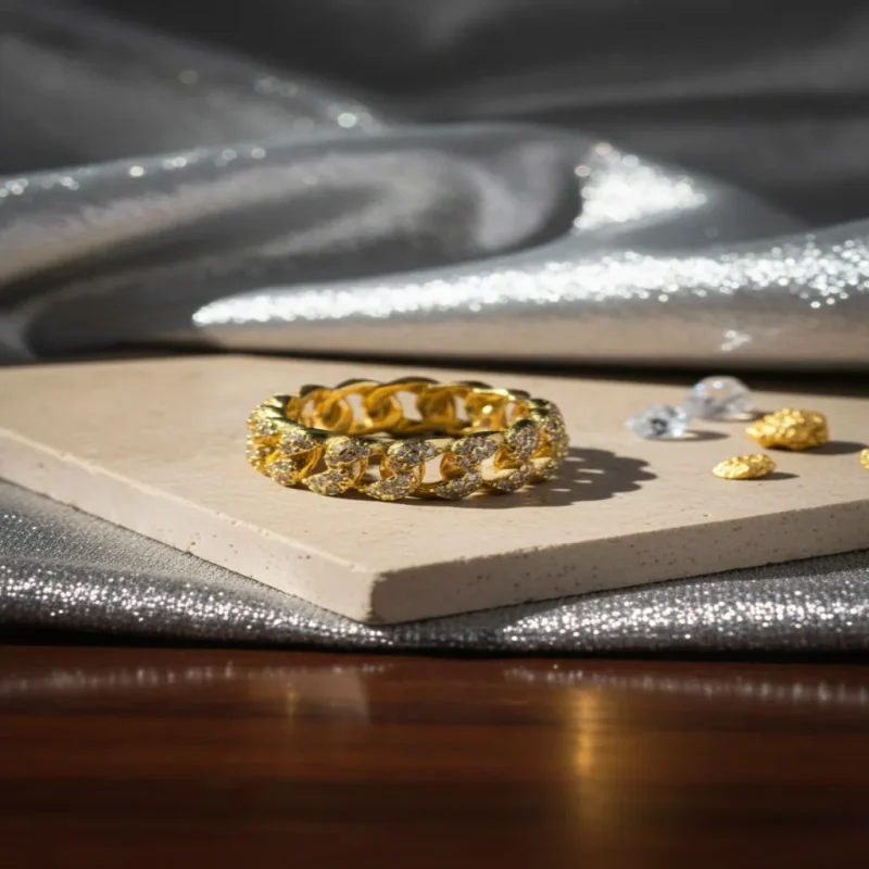 Moissanite accents to your Silver Cuban Link Ring—moissanite ring cost is affordable, boosting shine without overspending.