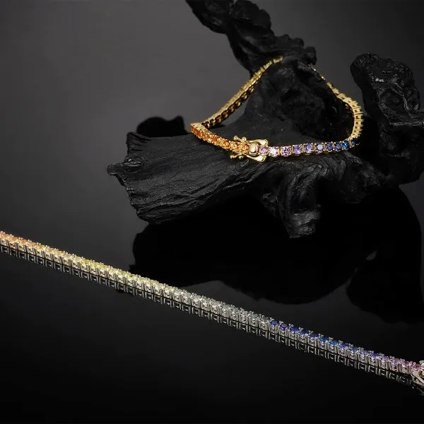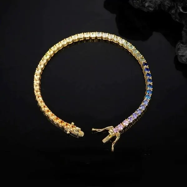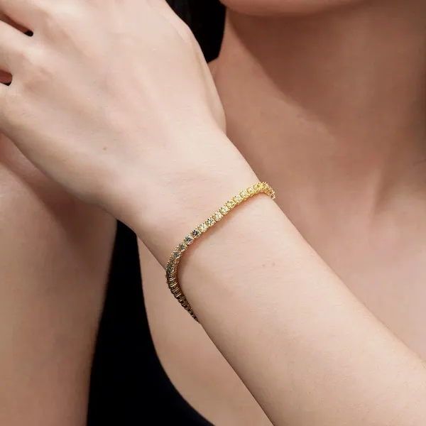 3MM Cultivated Colored Diamond Tennis Bracelet Ladies 18K Gold