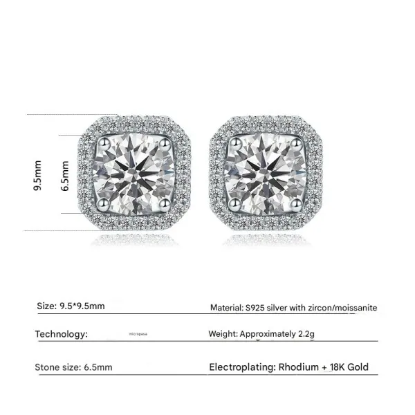 18K Moissanite Princess Cut Diamond Stud Earrings
